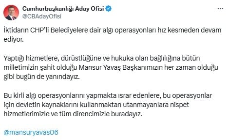 “İktidarın CHP’li Belediyelere dair algı operasyonları hız kesmeden devam ediyor.